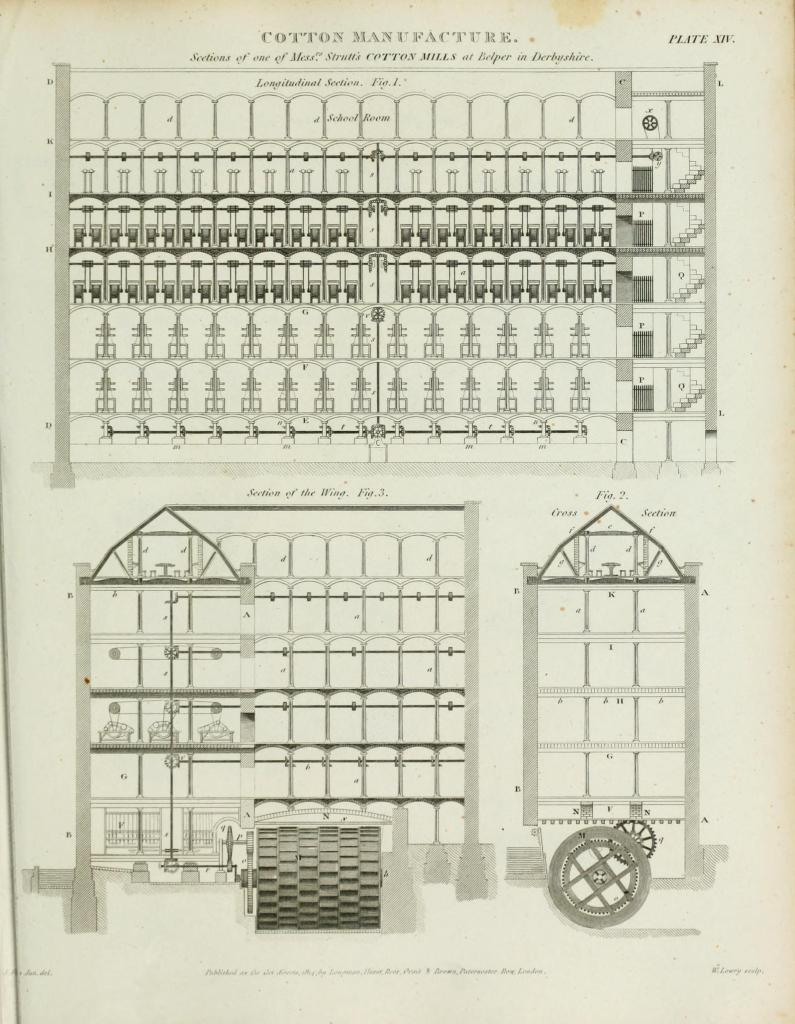 [3] There was precedent in the silk industry for large-scale spinning mills in Italy and England, such as the Lombes mill, also on the Derwent, which employed several hundred women to tend its machinery. But the problem of spinning silk was a simpler one, since it involved only a single motion to twist the fibers around one another. Robert Friedel, A Culture of Improvement (Cambridge, MA: MIT Press 2010), 222.