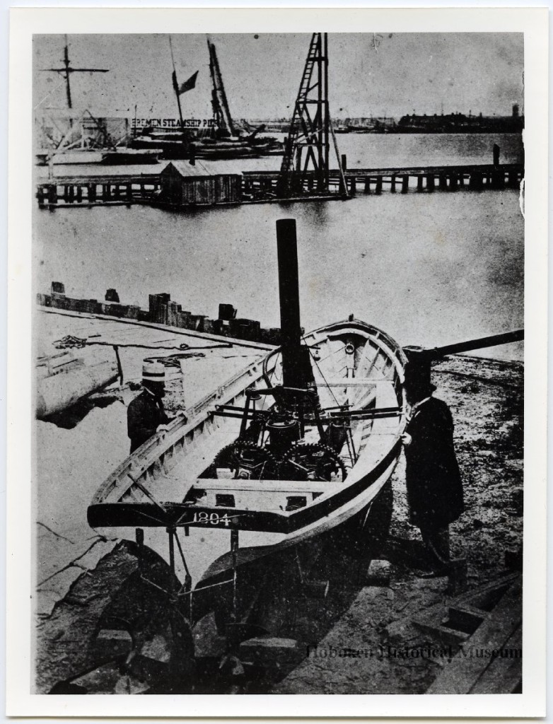 We have met Stevens before, as one of the four men granted a steamboat patent in 1791. Though not so politically prominent a man as Livingston, he had wealth enough to count as an American aristocrat. Stevens’ grandfather left considerable lands in New Jersey to his children, and his father further enlarged his means as a trader of wine, rum and other goods out of Amboy, a town at the mouth of the kill that separates Staten Island from the mainland. The younger Stevens then found his own new sources of income, including developing Hoboken into a retreat for wealthy New Yorkers in want of space and fresh air. Just as one might expect of aristocratic families, the Livingstons and Stevens intermarried. In 1770, Livingston wed Stevens’ younger sister Mary, and Stevens and his own wife named their second son Robert Livingston Stevens, after his uncle.